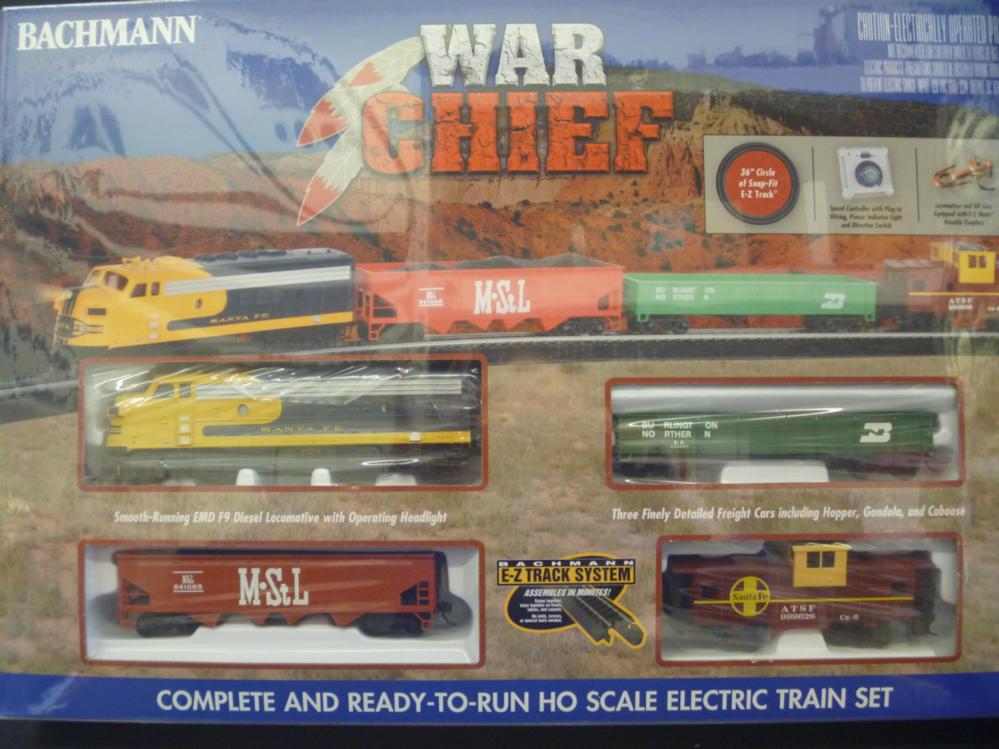 All who hear the roar of the War Chief cannot help but stare in awe as it charges across the wild terrain of the Southwest. Led by a powerful diesel locomotive in blue with classic yellow "war bonnet" color scheme, this set harkens back to the Santa Fe Railroad's heritage. You will be sure to conquer any job you face when you choose the War Chief! This ready-to-run train set includes: